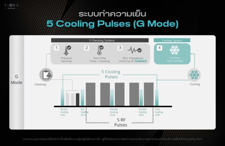 ขั้นตอนที่ 3: G Mode (Locking): กลับมาใช้ G-Mode อีกครั้ง เพื่อ “ล็อค” (Locking) พลังงานความร้อนที่สะสมไว้ใต้ผิว ทำให้กระบวนการกระตุ้นคอลลาเจน (Neocollagenesis)
